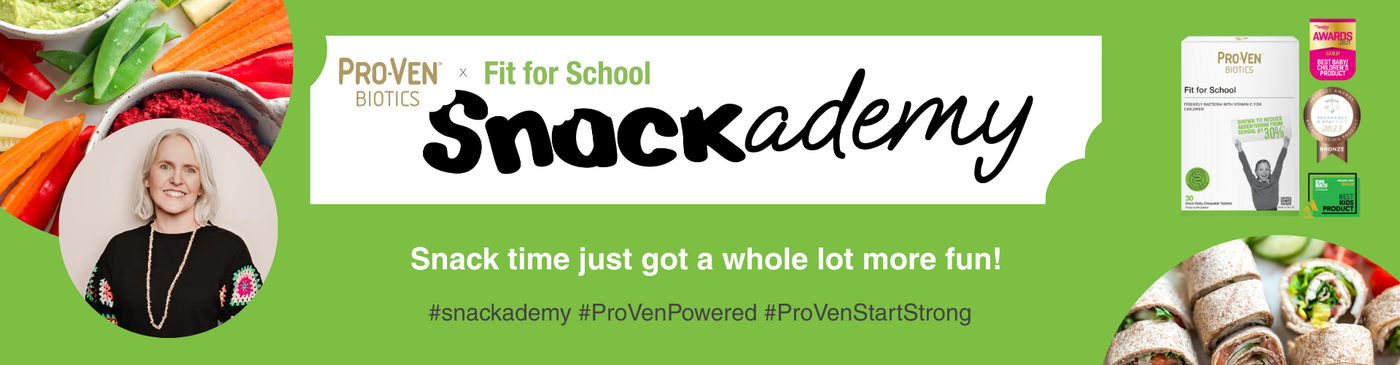 return to school is a re-set opportunity. ProVen’s Fit For School daily product for kids has been used in research showing numerous benefits specifically for children, including a reduction in school absenteeism. We’re thrilled to be partnering with Sarah to highlight Fit for School’s many advantages, and to be launching our first Snackademy menu of wholesome snacks crafted to further support children’s gut health and hence their brain, mood and energy levels.”