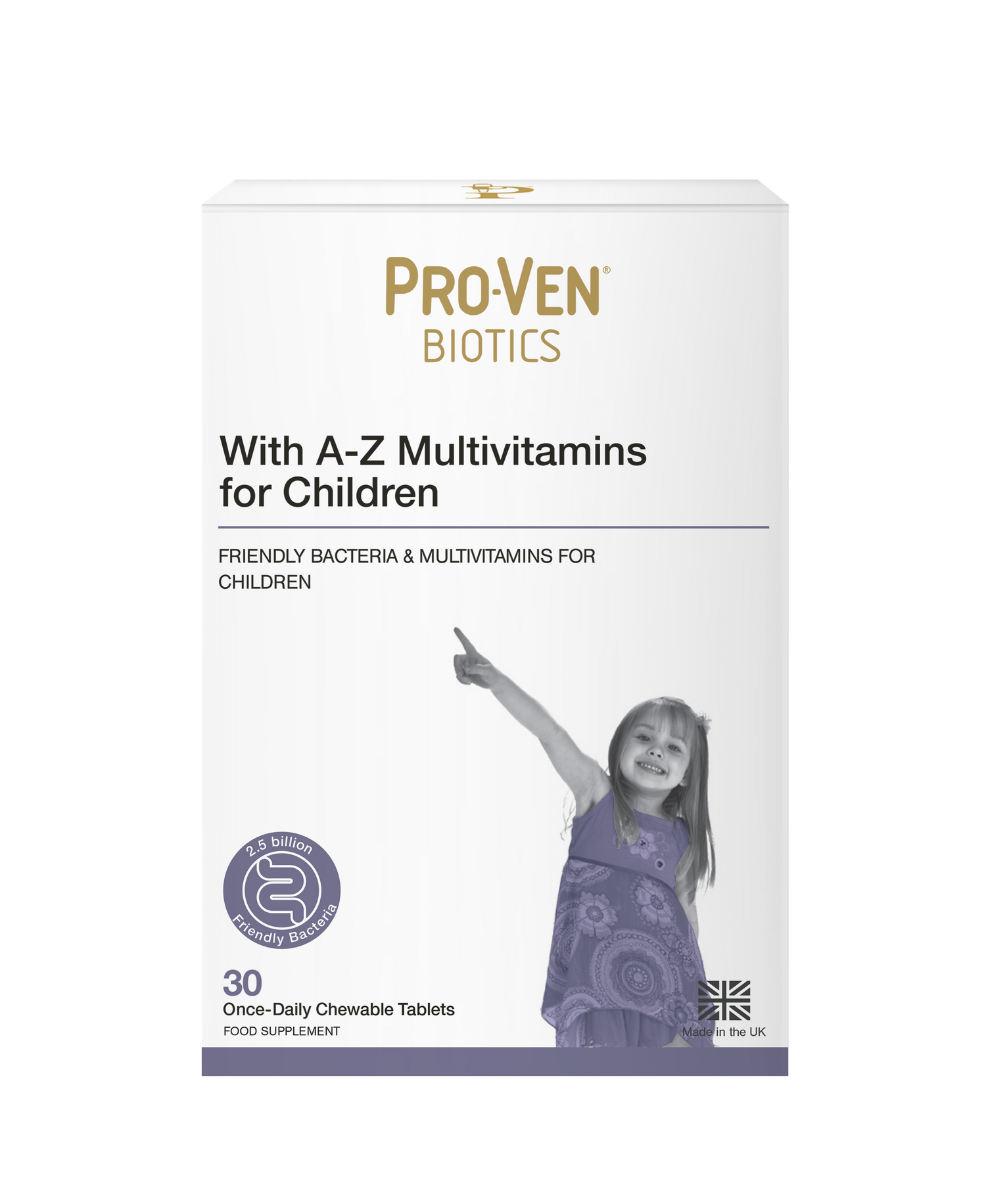 Sweeteners (Xylitol, Steviol Glycosides, Sucralose), Ascorbic Acid (Vitamin C), Microcrystalline Cellulose, Anti-caking Agents (Silicon Dioxide, Magnesium Stearate), Microorganisms (Lactobacillus acidophilus CUL60, Lactobacillus acidophilus CUL21, Bifidobacterium animalis subsp. lactis CUL34, Bifidobacterium bifidum CUL20), Modified Corn Starch, Natural Flavouring (Blackcurrant), DL-Alpha Tocopheryl Acetate (Vitamin E), Sodium Carboymethylcellulose, Calcium Pantothenate, Maltodextrin, Sucrose, Acacia Gum, Dicalcium Phosphate, Pyridoxine Hydrochloride (Vitamin B6), Corn Starch, Corn Dextrin, Riboflavin, Retinyl Acetate (Vitamin A), Corn Oil, Antioxidants (DL-Alpha Tocopherol, Sodium Ascorbate), Folic Acid, Potassium Iodide, Phylloquinone (Vitamin K1), Biotin, Cholecalciferol (Vitamin D3), Cyanocobalamin (Vitamin B12)