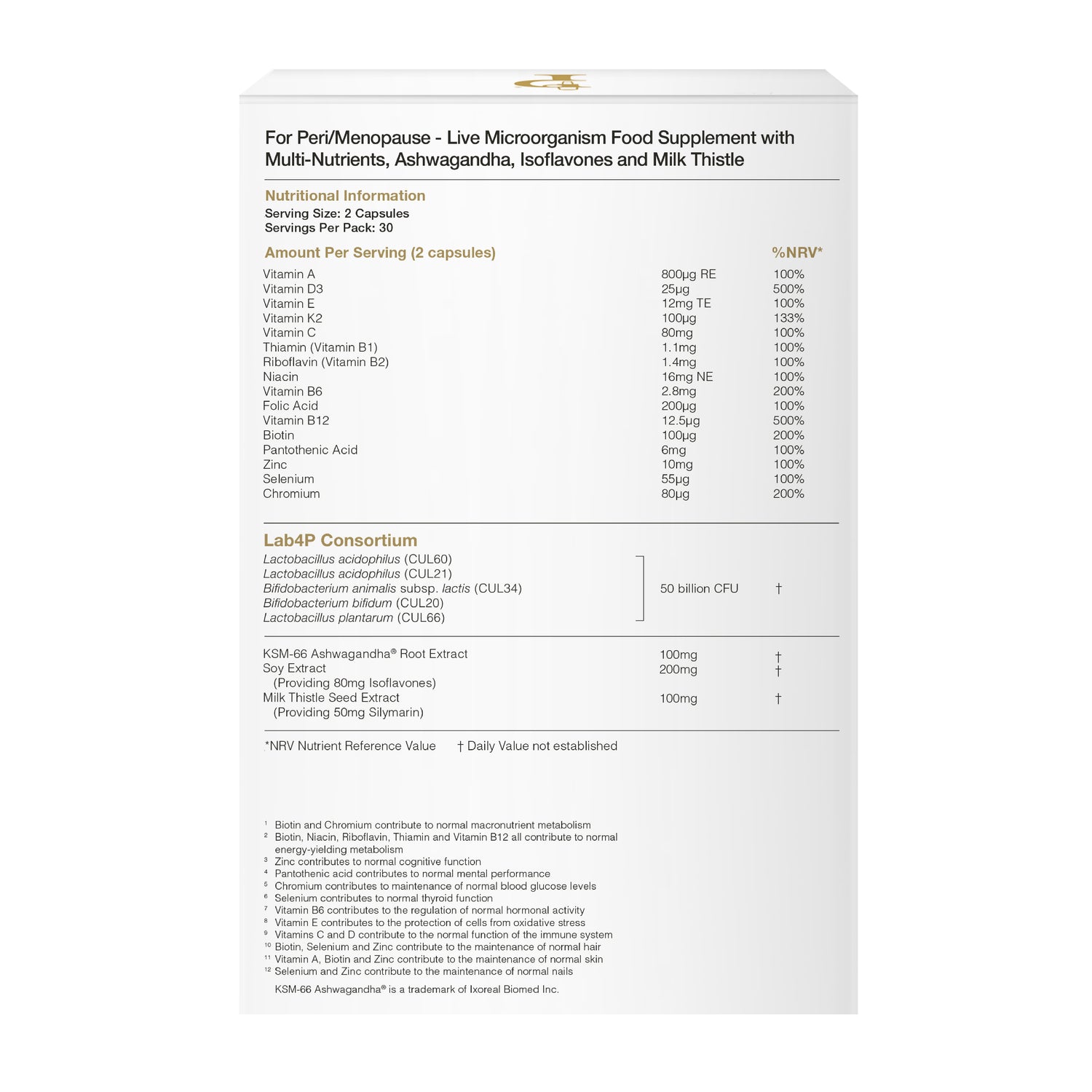 A comprehensive nutritional complex, this product contains multiple active ingredients, including 50 billion research-backed Lab4P multi-strain friendly bacteria, and a wide range of vitamins, minerals and other nutrients, including Ashwagandha, Soy and Milk Thistle.